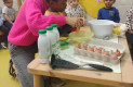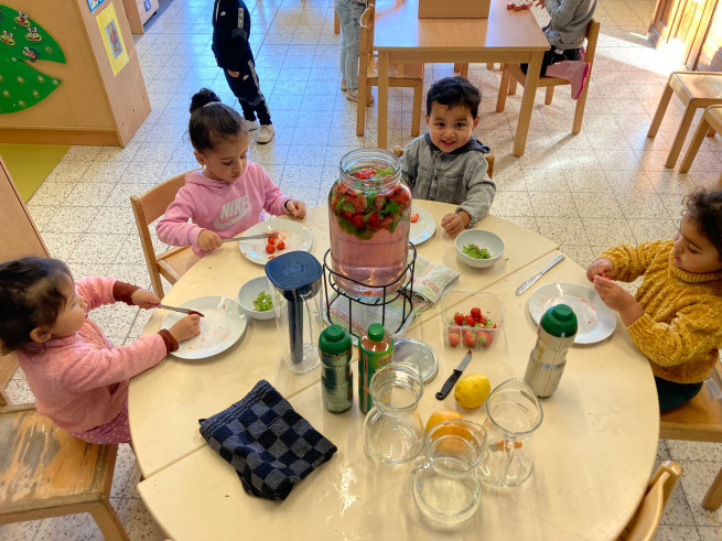 De kikkers maakten lekkere sapjes, de visjes bakten wafeltjes en bij de vlinders bakten ze pannenkoeken voor het feest. Er werd lekker gesmuld en gefeest!