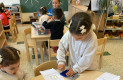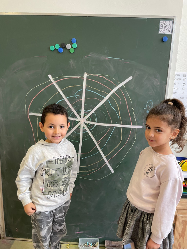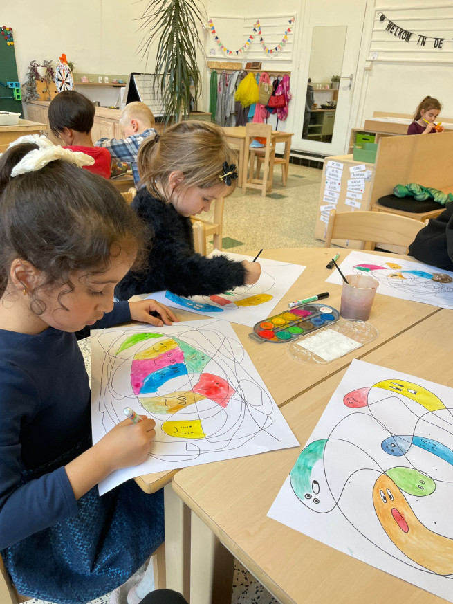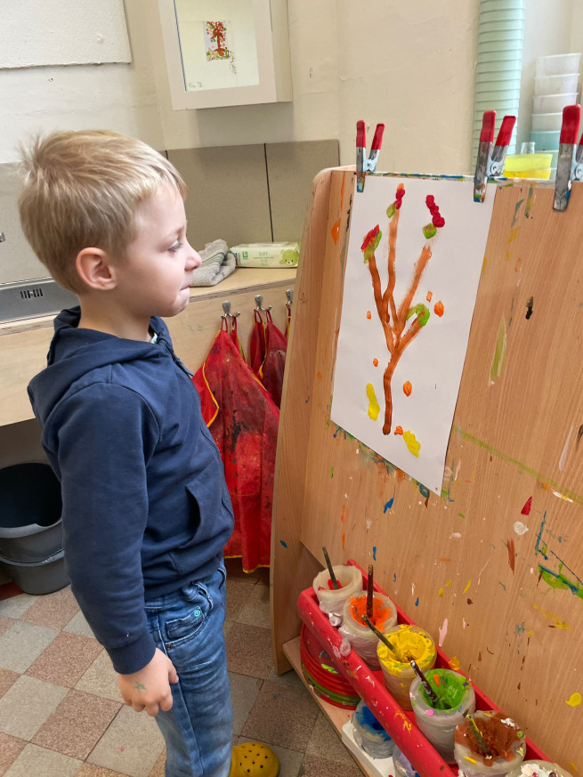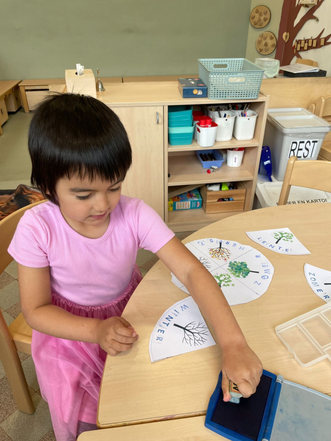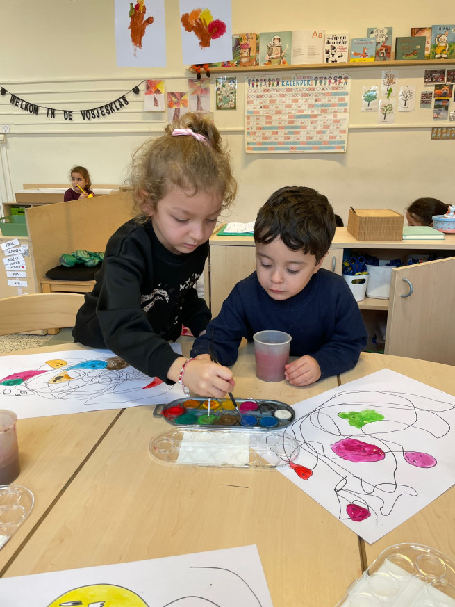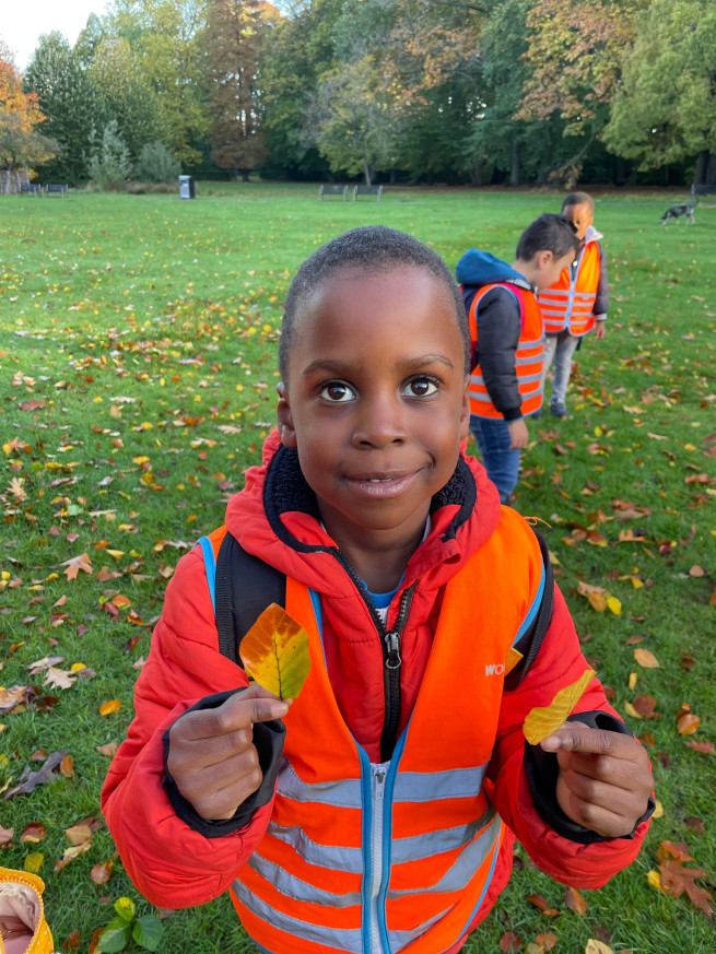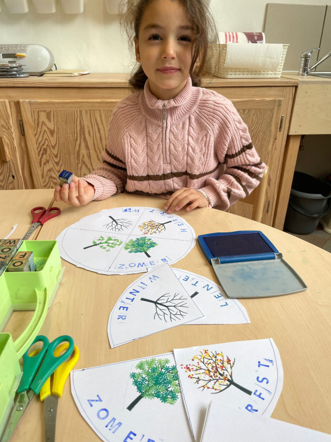 De kleuters leerden de vier seizoenen kennen en we gingen op ontdekking naar wat er allemaal gebeurd in de herfst. De blaadjes vallen van de bomen, het wordt kouder en de dagen worden korter.