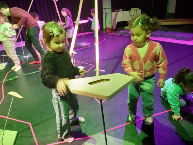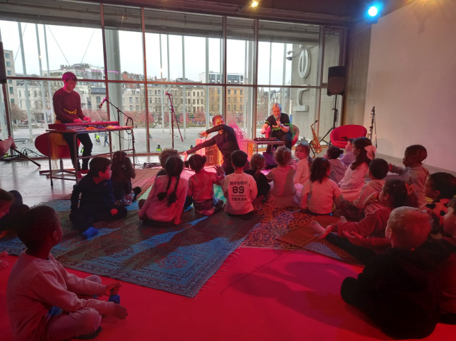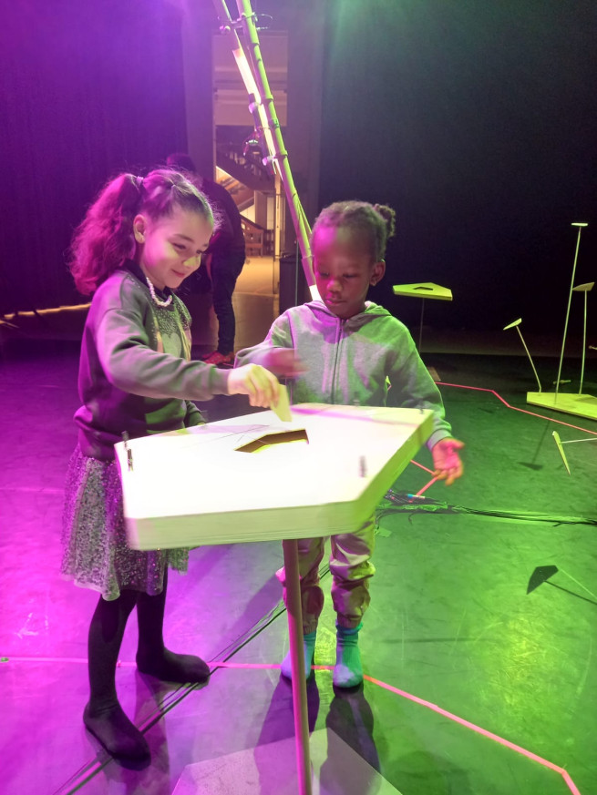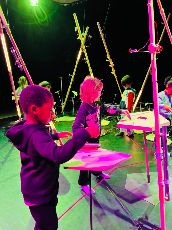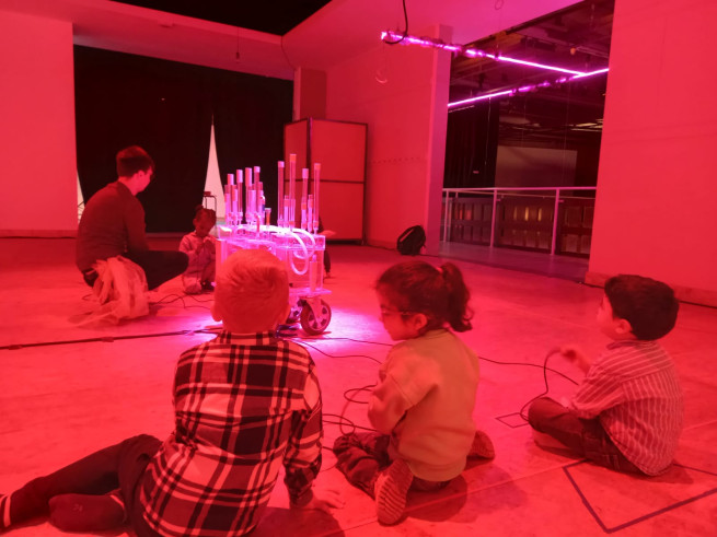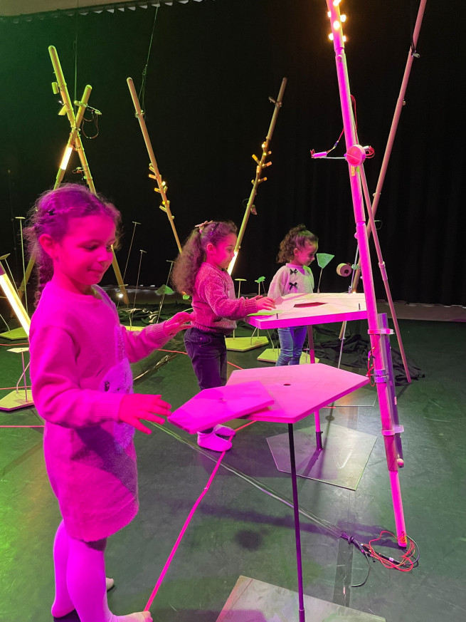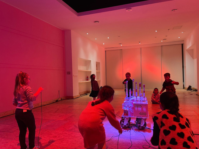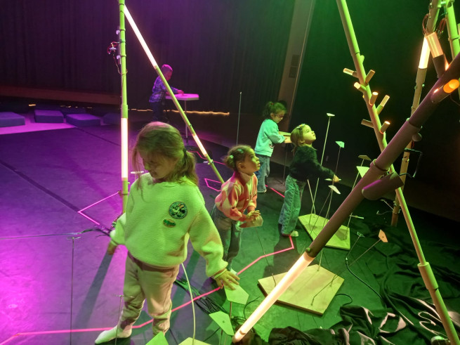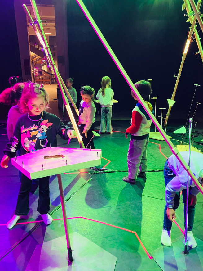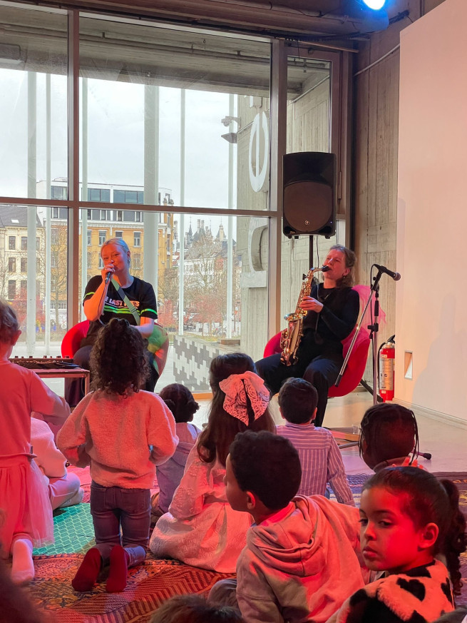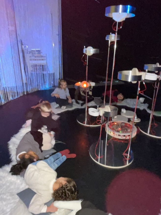 Eens aangekomen stond ons er een leuke workshop te wachten. We mochten muziek en geluiden maken en experimenteren met de installaties. Het was een leuke, creatieve voormiddag!