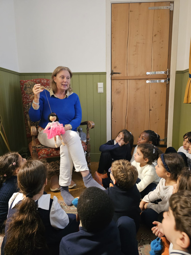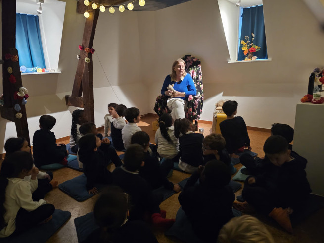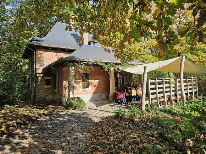 Na een fikse wandeling kwamen we aan in het 'Sprookjeshuis' in het Rivierenhof. Daar werden we ondergedompeld in de magische sfeer van verhalen, sprookjes, muziek, zintuigen,... Het was een fantastische namiddag!