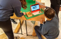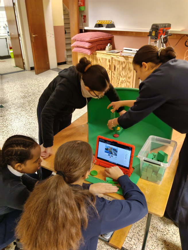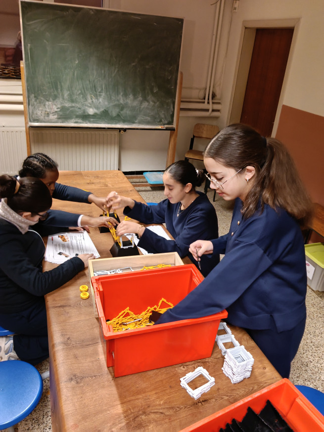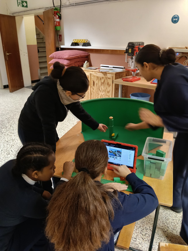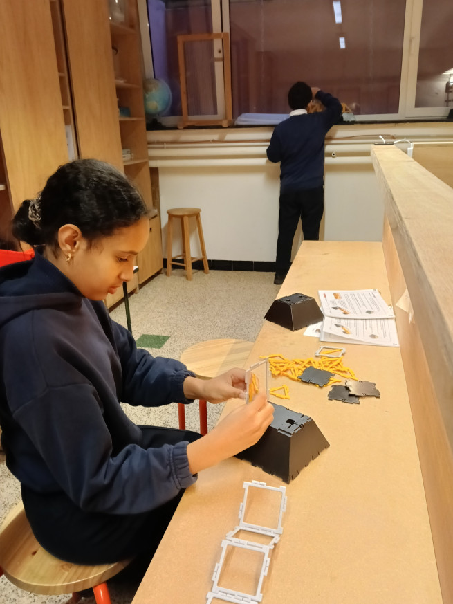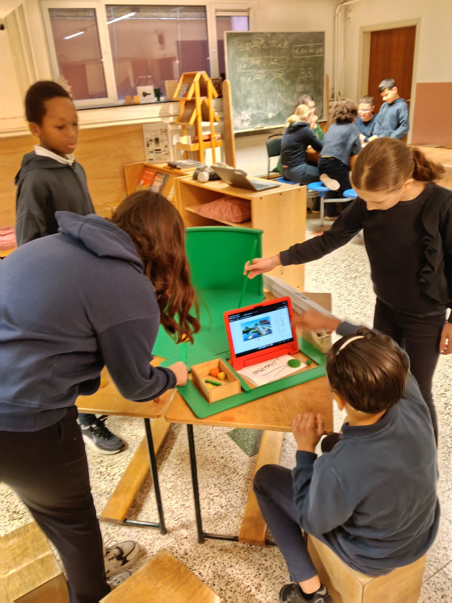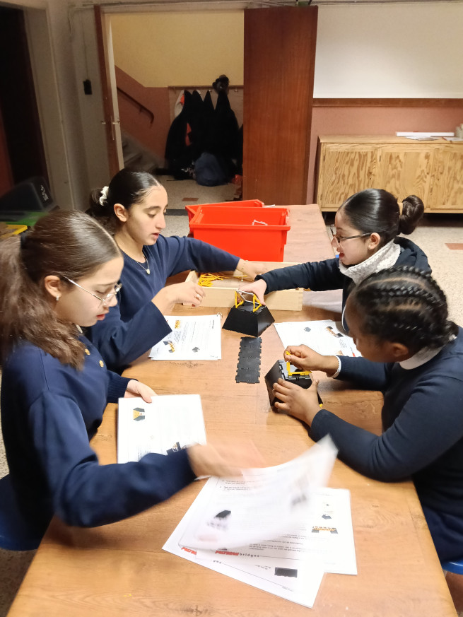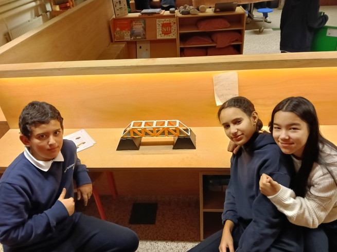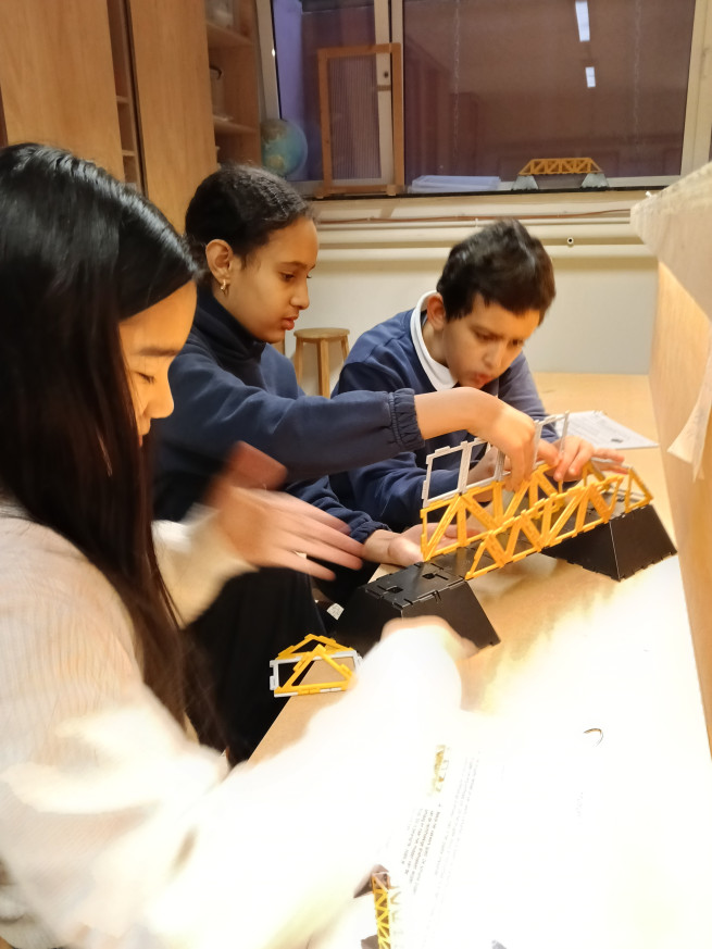 Terwijl de ene groep experimenteert met greenscreen, bouwt de andere groep bruggen. Met behulp van werkkaarten kunnen verschillende soorten bruggen gebouwd worden. Aan de hand van de informatie die op de werkkaarten staat, komen we heel wat te weten over de verschillende soorten bruggen.