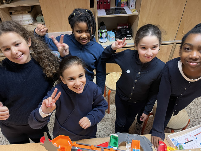 Spelend leren, over alle vakken heen. Dat is werken rond taal, rekenen, techniek, geschiedenis... in kleine teams in de klas of in ons technieklabo. Dmv. stappenplannen, zelfstandig, begeleid, met laptops, met echte machines en materialen, op onderzoek gaan en samen leren...
