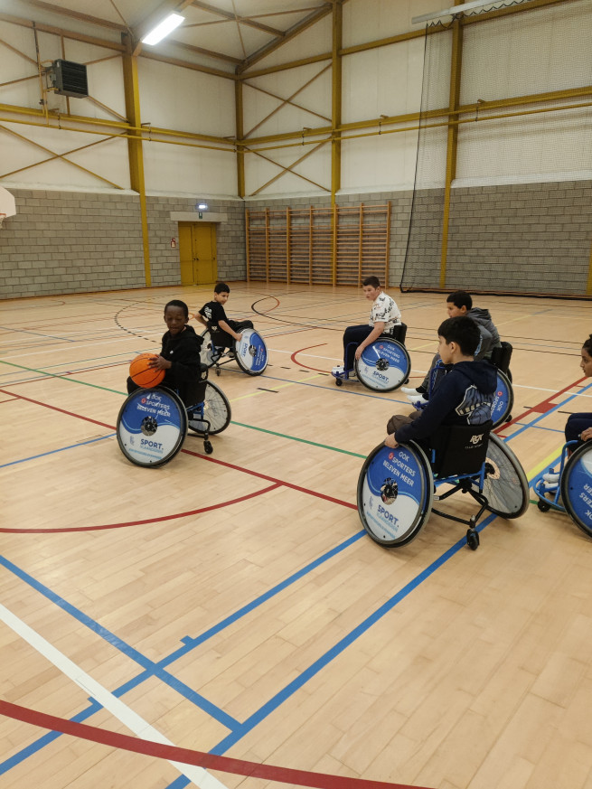 Tijdens de G-sport leren de leerlingen de bekendste sporten voor personen met een beperking kennen. Rolstoelbasketbal, hockey zonder te spreken en te horen en torbal (een balsport die onze leerlingen geblinddoekt speelden).