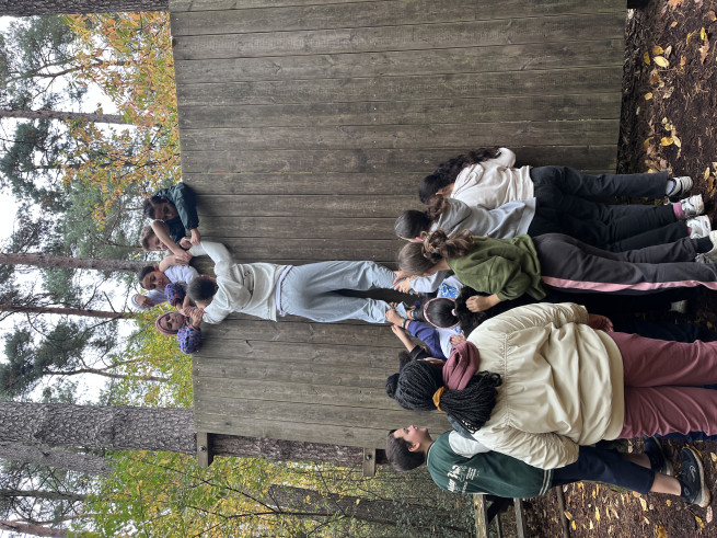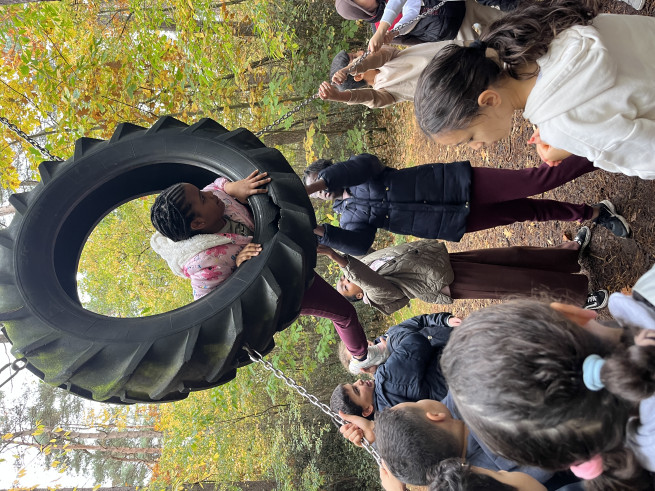 Als laatste activiteit speelde elke klas, samenwerkingsspelen. Een zeer mooi moment om te verbinden in de klassen en allemaal samen over de muren, banden en draden te raken. Niemand werd achtergelaten en grenzen werden verlegd!