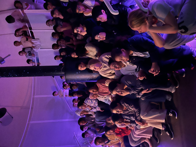Straks, na het avondeten, bezoeken we nog de Cosmodroom. Perfect om onze lessen wereldoriëntatie over de planeten, sterren... in de praktijk om te zetten.